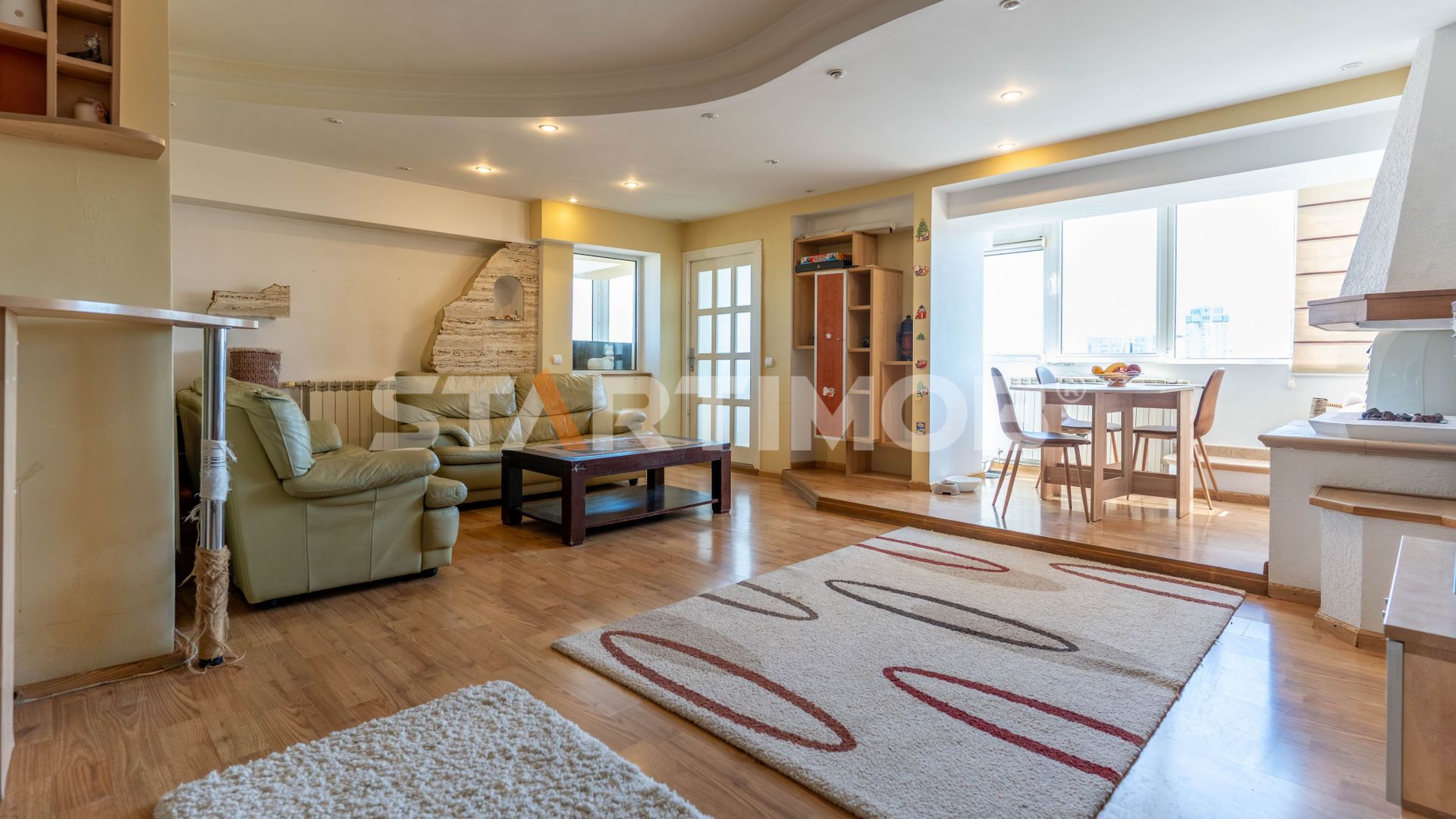 Cu o structura initiala de 4 camere, apartamentul a fost reconfigurat interior, rezultand un living generos, cu un spatiu deschis si aerisit, ideal pentru relaxare si zona de dining. Configuratia actuala include: living, 2 dormitoare, 2 bai, hol, bucatarie si balcon.