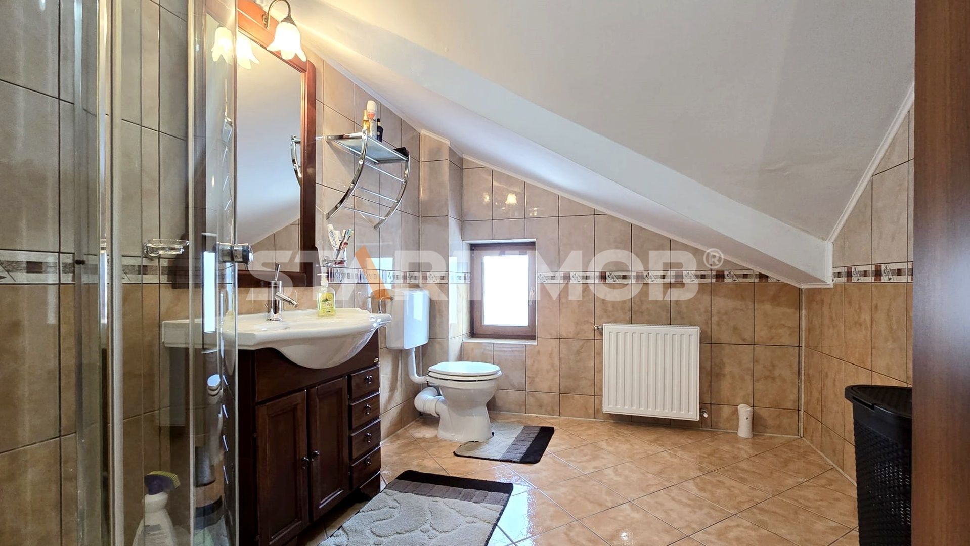 Mansarda: 2 dormitoare, grup sanitar dotat cu cabina de dus.