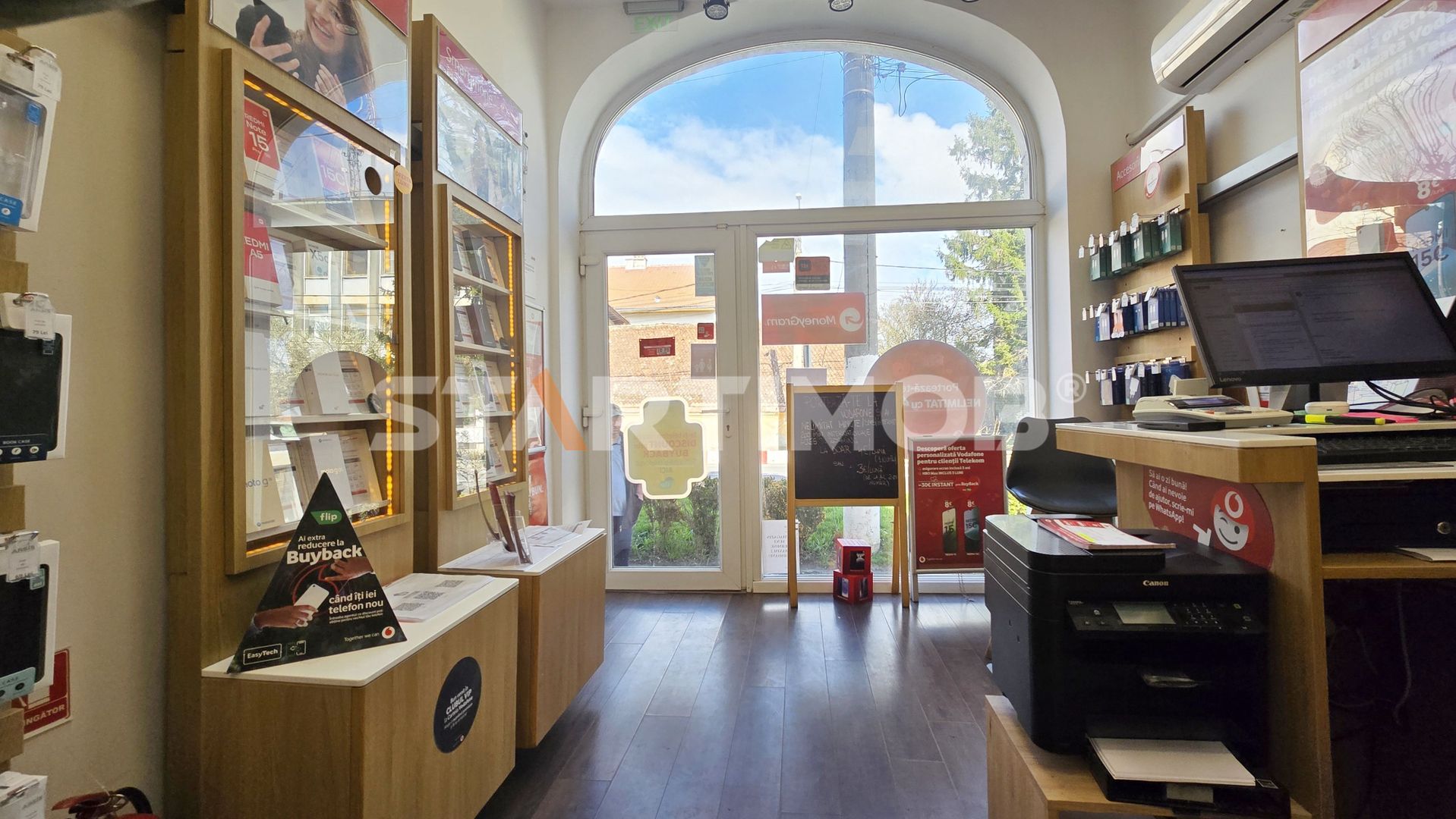 Spatiul dispune de vitrina stradala de 3 ml, are o suprafata totala de 24 mp fiind compus din spatiu de vanzare, birou si grup sanitar .