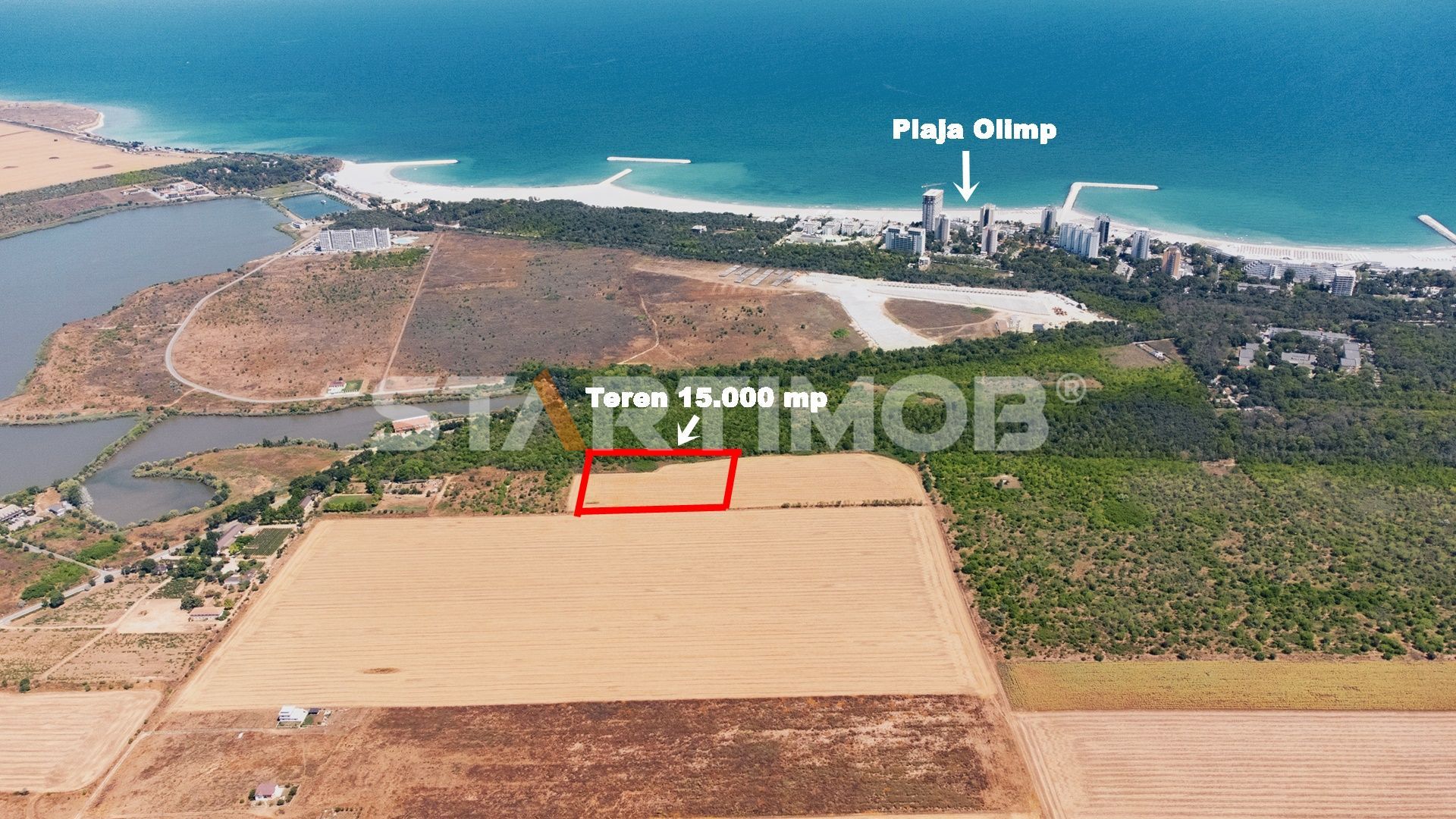 Terenul are o suprafata de 15.000 mp, cu un front generos la un drum secundar ce intersecteaza soseaua 39 B si asigura acces rapid la drumul european E87, plaja Olimp si zonele turistice din Neptun. Amplasamentul plat si configuratia rectangulara faciliteaza dezvoltarea unui proiect unitar de amploare.