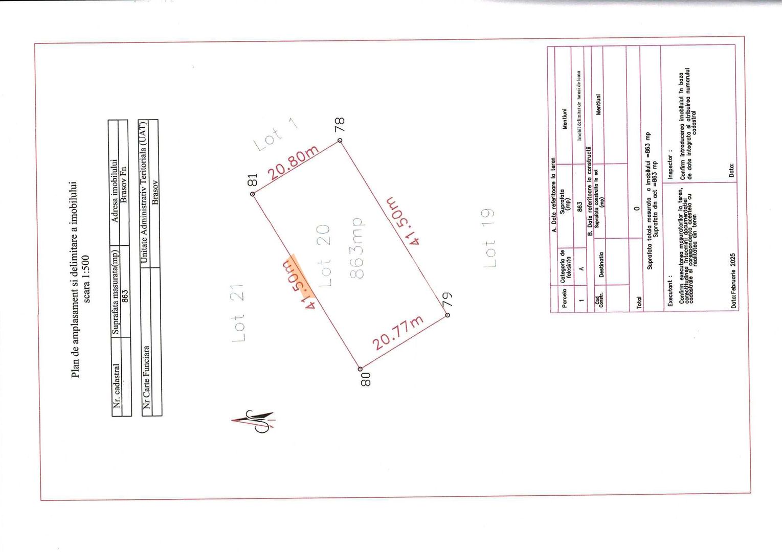 Pret vanzare lot 863 mp = 150655 Euro (185 Euro/mp)